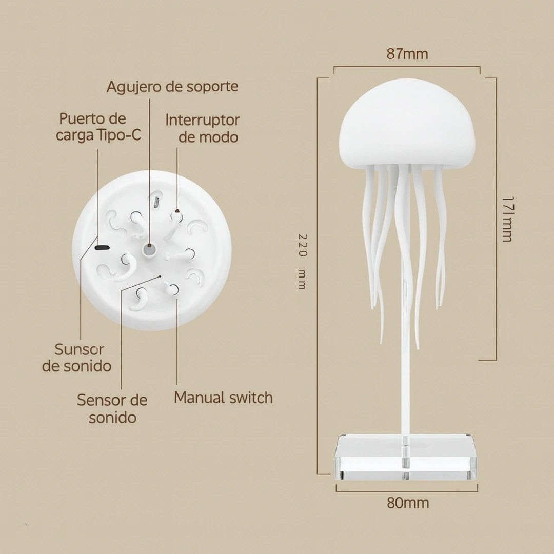 Sus tentáculos flexibles simulan un nado real y las luces LED cambian suavemente de color, creando un efecto hipnótico. El modo sonido responde a música o voces, llenando tu entorno de magia. Perfecta para dar un toque único en celebraciones y reuniones de esta época.